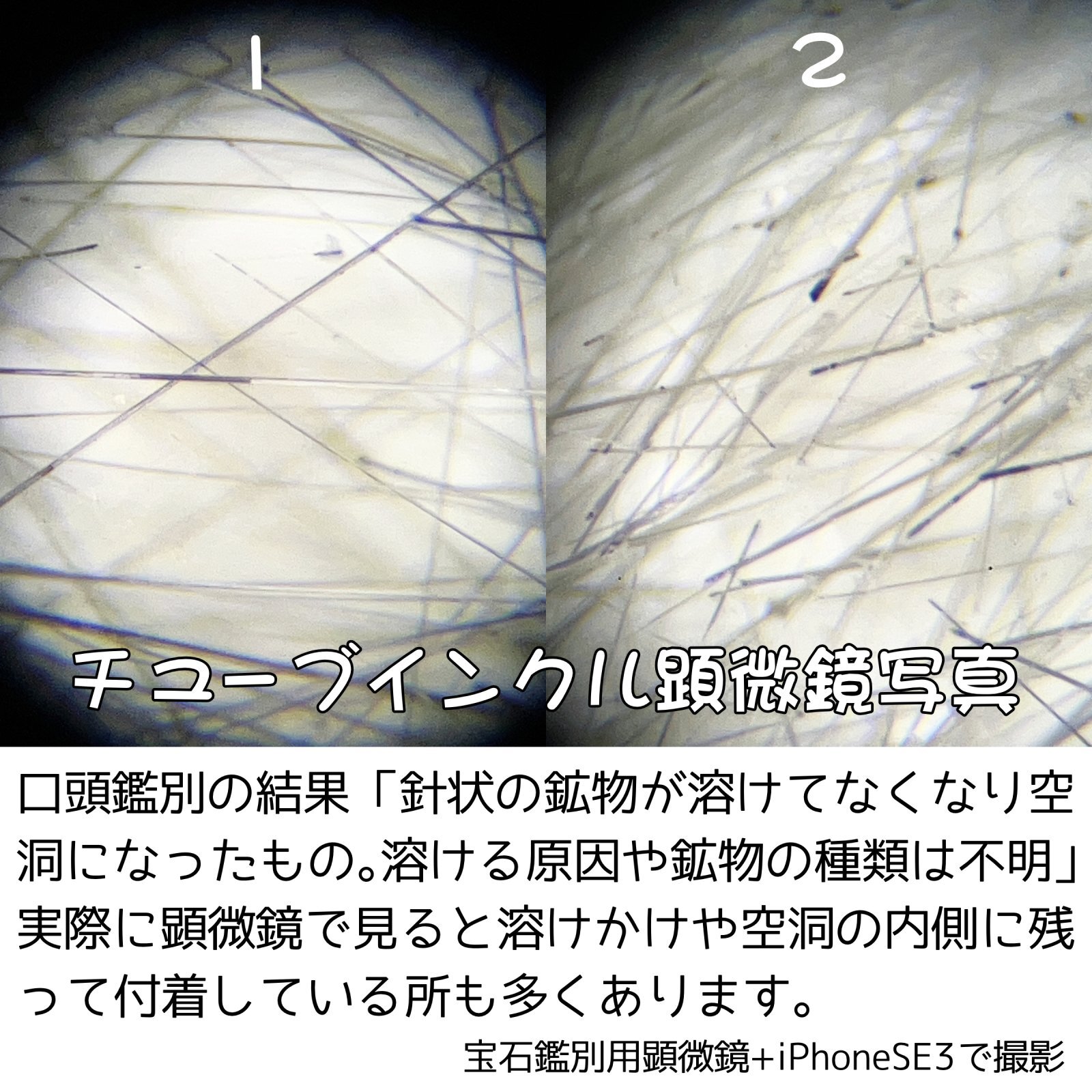 『針状の鉱物が溶けてなくなり空洞になったもの